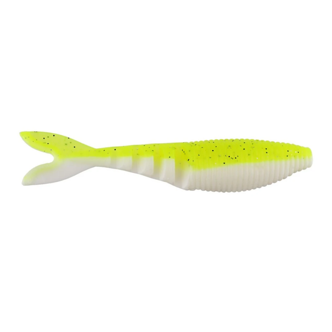 Additionally, Brett wanted to keep the tail action tight, similar to an actual baitfish, so we designed the tail with accordion-style cuts and a flanged tail which keeps the action minimal. Hookset ratios are also improved as the tail folds in on itself when the fish bite.