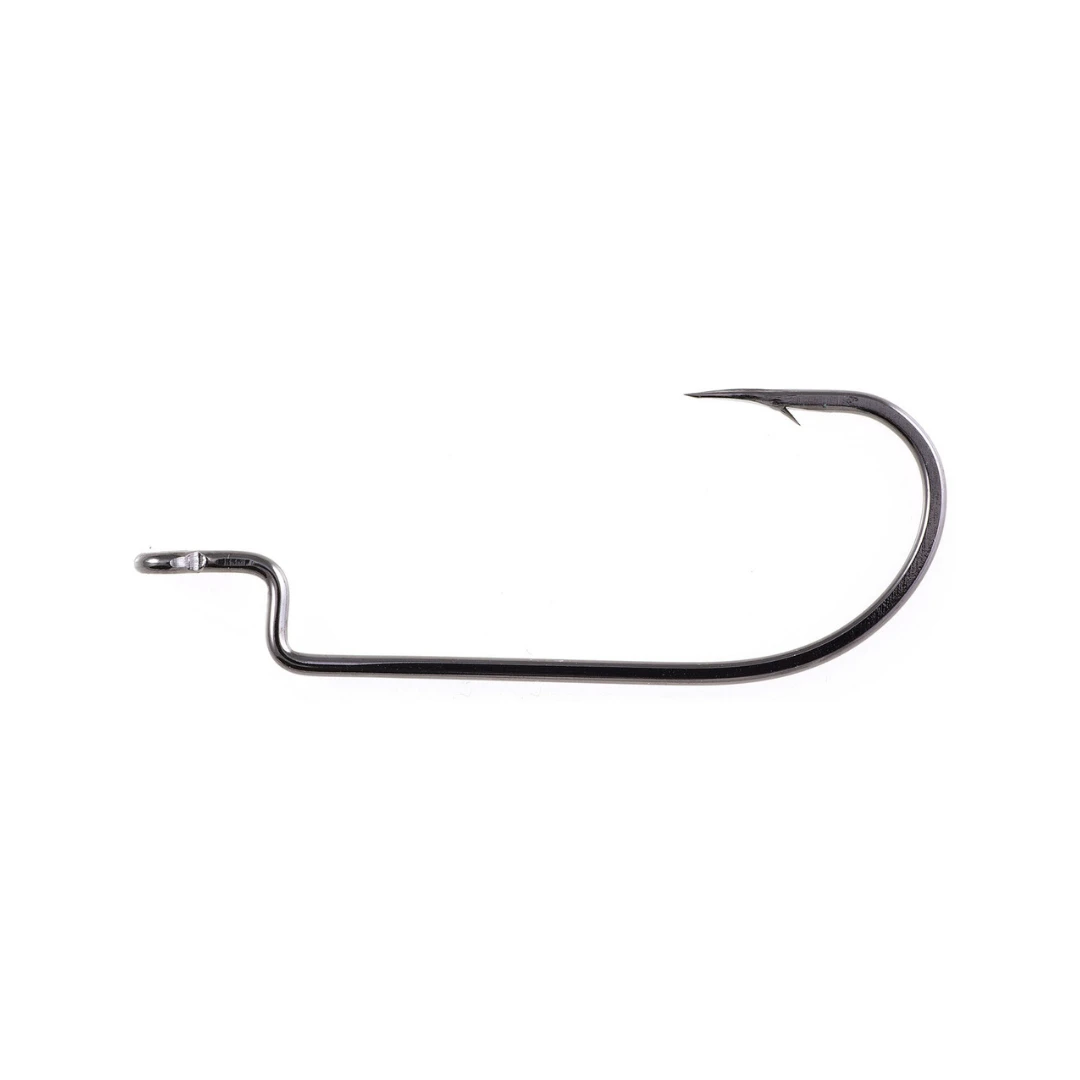 Offset Shank, Wide Gap worm hooks with worm-holding 90° bend shoulder. Extra wide gap bend and heavy-duty XX strong shank for rigging big baits and hauling bass from heavy cover. Ideal for jerk baits. Features include Cutting Point® and available in Black Chrome and Red finishes.