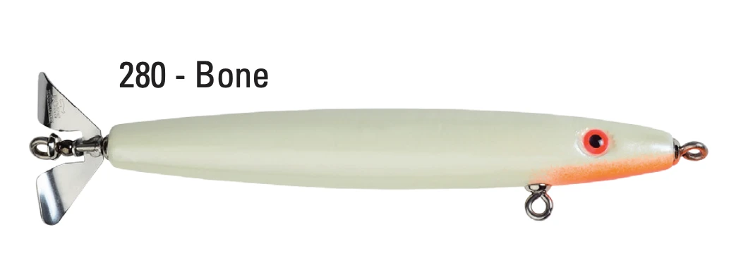 Cedar Top Water Single Propeller Jerk Bait with Heavy Duty Rigging Bone 7.5 in.